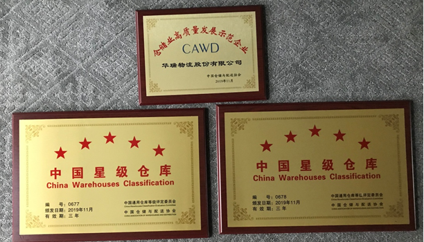 華瑞物流股份有限公司首次獲得“中國倉儲業(yè)高質(zhì)量發(fā)展示范企業(yè)”榮譽;杭州臨港物流有限公司、平湖華瑞倉儲有限公司再次獲得“中國星級倉庫”榮譽。